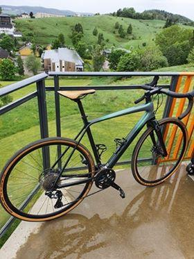 Fikk en trang til å henge meg på Gravel moten. Hadde sett for meg en sykkel med stiv gaffel, men kom over denne i samme butikk. Etter en testtur var jeg ikke i tvil. Dempegaffel er helt nydelig på denne type sykkel etter min mening.