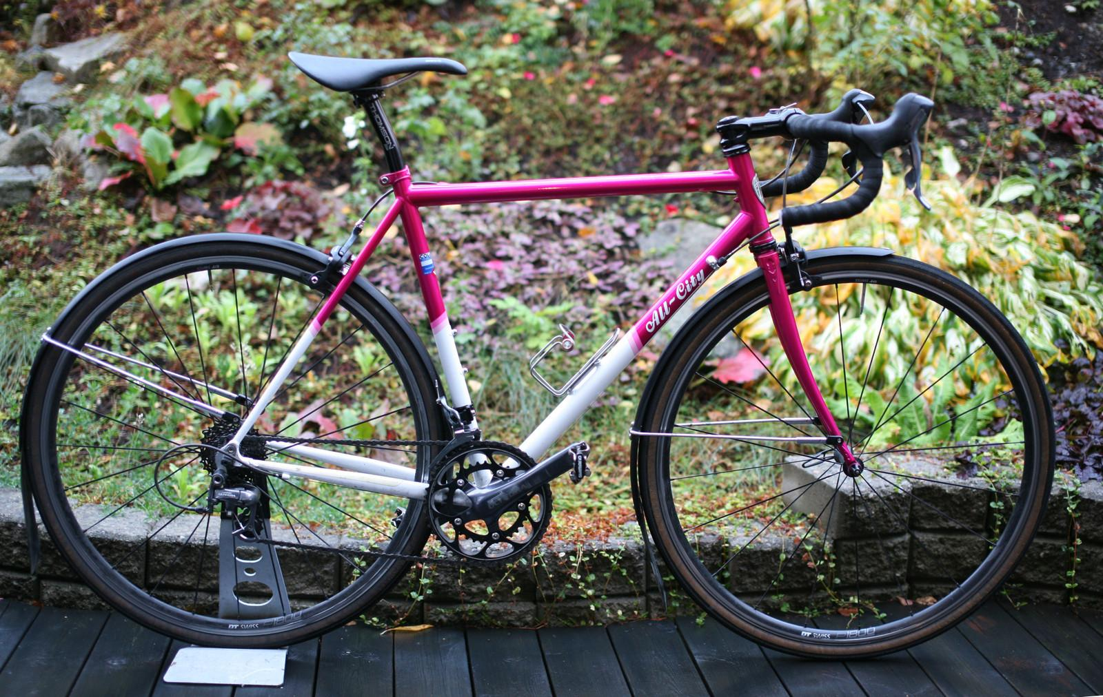 https://theradavist.com/2015/11/for-all-over-your-city-and-more-testing-the-all-city-mr-pink-road/https://gearjunkie.com/biking/all-city-mr-pink-road-bike-reviewKan selges som rammesett.