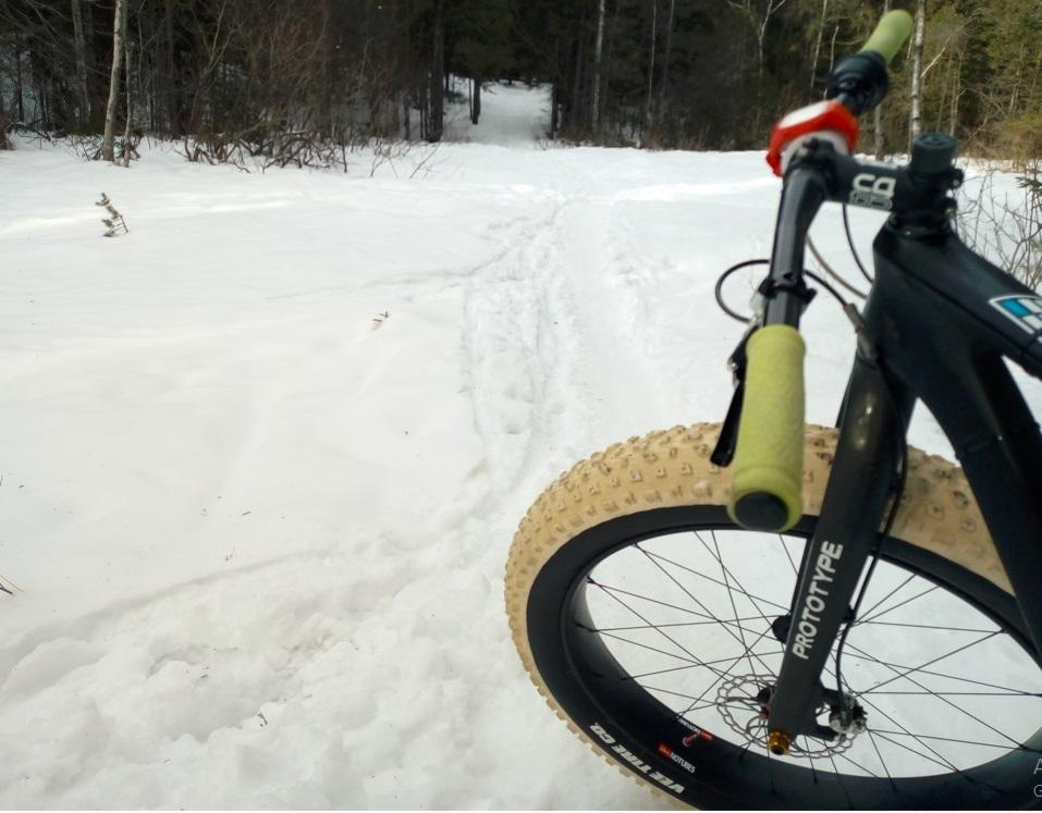 60km+ runde innover til nordlige deler av marka idag, suverent hele veien. Svippet ned E6 på slutten, og den er fin-fin nå. Øvre del er foreløpig litt løs og det krever litt lett konsentrasjon (Jumbo Jim 4.8 med 4psi) , mens nedre del mot nedre Blanksjø er rimelig hardtråkket. Litt (minimalt) med is på nedre del, men ikke behov for pigg.