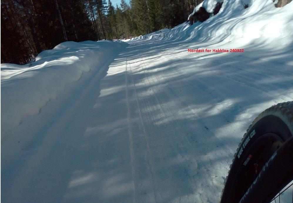 Sjekket ut den grusveien som går et stykke ned på østsiden av Hakkloa (se bilde). Den var ikke måkt helt ned, men ca 1.6km inn, så er en avstikker på litt over 3km.