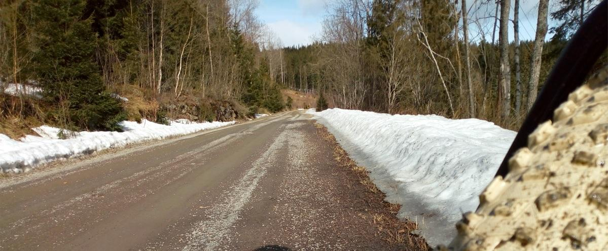 Selv veier som ligger øst-vest begynner å slite nå, men fortsatt tildels svært bra, som f.eks Hakadal mot Hakkloa og Stryken mot Sandungen (bilder).