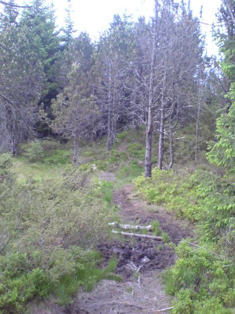 Kom ned med noen småsår etter alle greinene og med et flott stup over styret på merittlisten, egentlig helt topp det der. Jeg stikker ikke opp hit flere ganger, med mindre noen kan si at det fjellet har en drøss med gode stier :-)