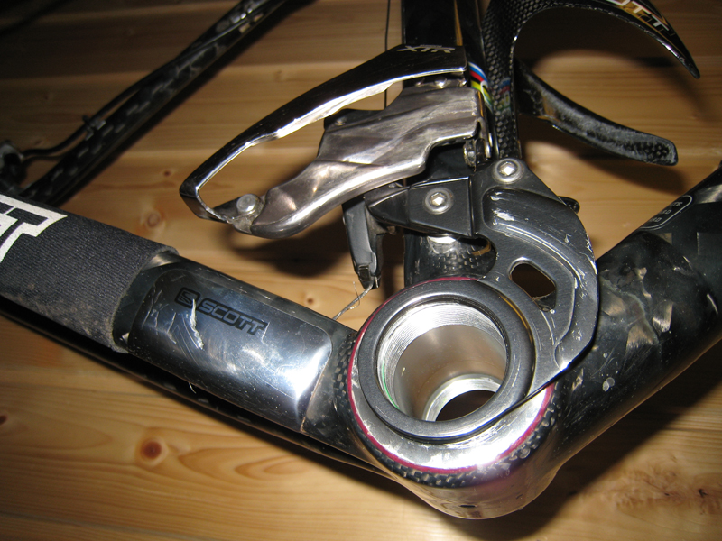Jeg har en Scott Scale. Krankhuset er 73mm. Jeg har E-gir. Mellom krankhuset og E-giret er det en 2,5mm spacer.