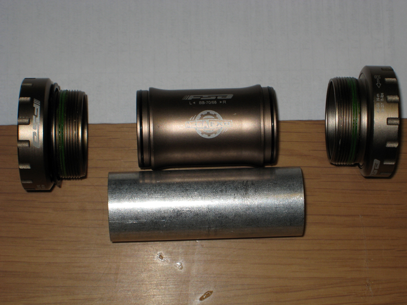 Der var hylse nummer to, ja. Har bare lagt merke til den ytterste, jeg. Den med skrift på, altså. Ifølge deler as trenger du ikke bry deg med de ekstra millimeterne med gjenger. Det du får på høyresiden når du skrur i det nye lageret ditt er akkurat samme styrke som på en ramme med 68mm krankhus og to spacere på høyre side. Lageret er med andre ord laget for å holde under disse forholdene.