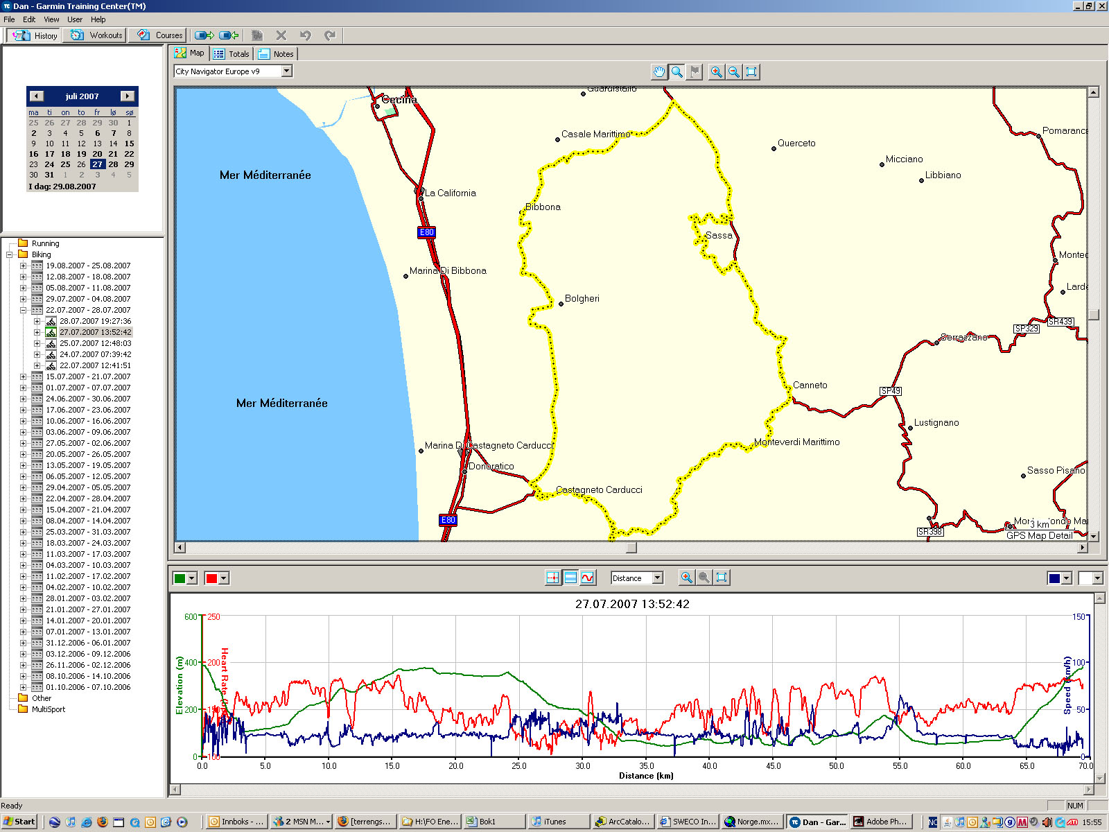 Når man nå vet hvordan dette funker så kanskje man til og med kan tørre å importere alle profiler fra ferien, som ligger på laptopen. (Når jeg kom hjem fra ferien fikk jeg jo selvsagt bare importert profiler for den siste ferieuken, fra GPSen, men de ligger fortsatt i TrainingCenter på laptopen.)