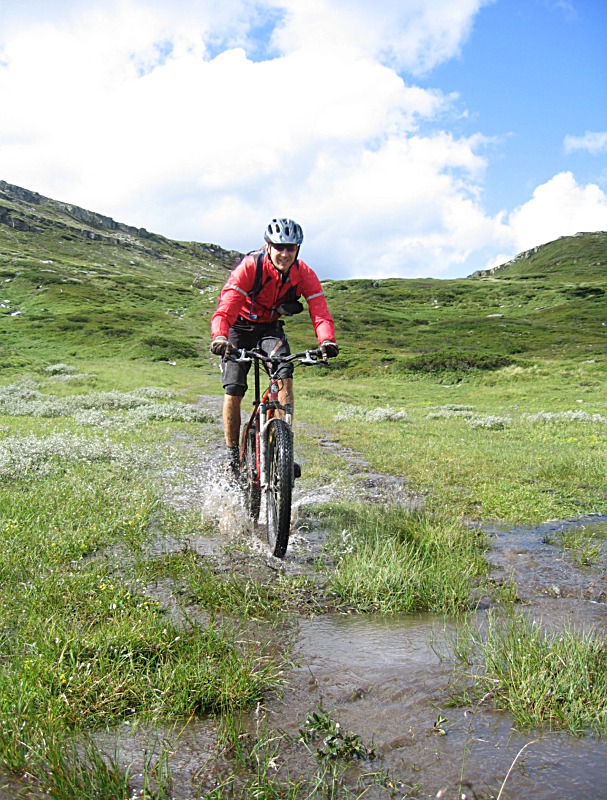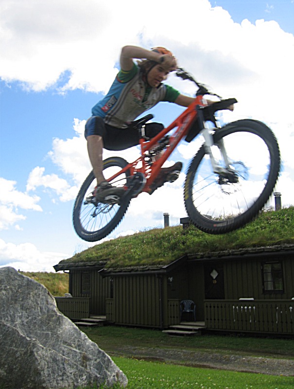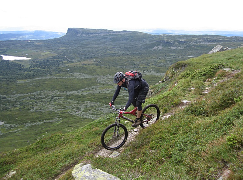 Doven frokost, litt logistikk, og ut på tur. Vi var en gruppe på sju som dro opp grusen, småttissti over til standardstarten, over til Pølsekrysset og videre ned til setra i Gamledalen. Opp Gamledalen, en tur fram og tilbake på Bånsæterkampen, og ned Gamledalen igjen. Yiiiihah!