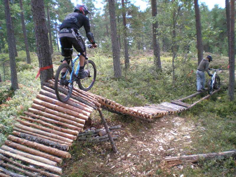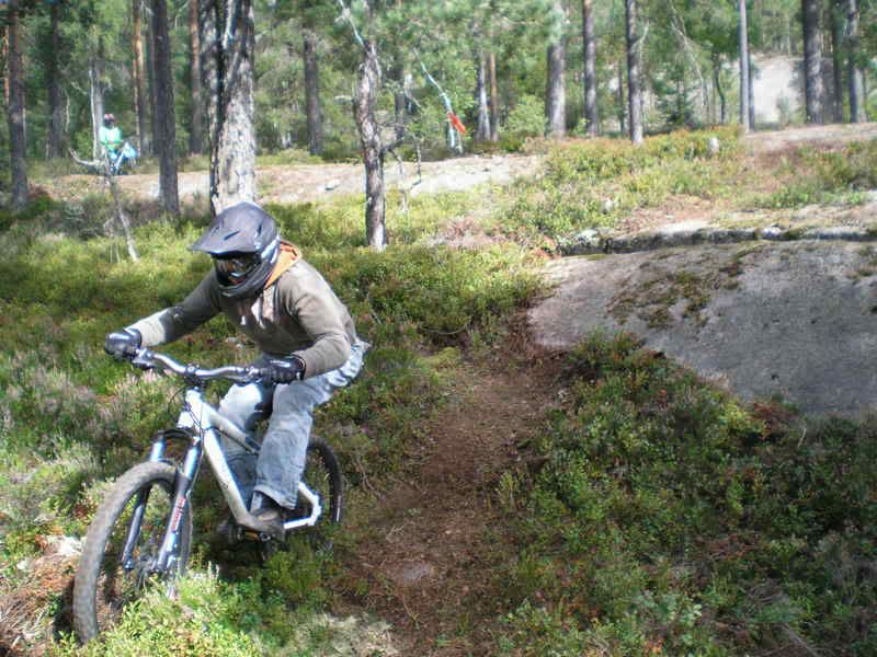 Sånn, da har vi mekka litt løype. Tror den blir knallbra. Masse flyt på toppen, en superbratt kneik, litt høyfartsparti på midten, og stupe ned i bratt smal skogssti. Siste partiet krever mer jobbings men det får vi til.