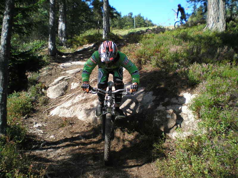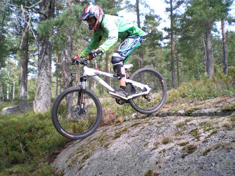 Hah! Hva er det som får en voksen mann til å stikke tidlig fra jobb, surre fast padding og helhjelm på sekken, slenge 20 kg sykkel på skulderen, og trave ivei 300 høydemeter rett opp lia i 25 varmegrader og stekende sol?