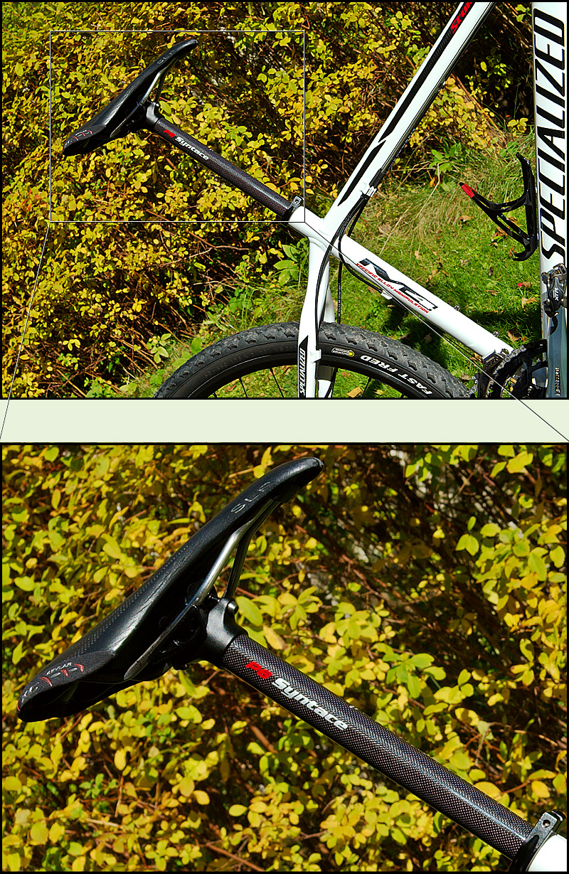Jeg synes Syntace pinnen var mye riktigere utseendemessig på denne sykkelen enn det Moots'en var; selv om sistnevnte er lekker i seg selv.