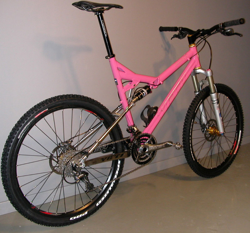 Vi har hatt innbrudd på jobben inatt, og blant annet ble en Yeti ASR-SL stjålet. Sykkelen er lett gjenkjennelig, og den eneste av sitt slag i Norden, om ikke Europa. Forrammen er rosa, gaffelen er en RockShox Reba WC (hvit), og det letteste å kjenne den igjen på, er at den er utstyrt med rosa Chris King styrelager og nav. Dette er ikke en sykkel som tilfeldigvis kan være kjøpt et annet sted.