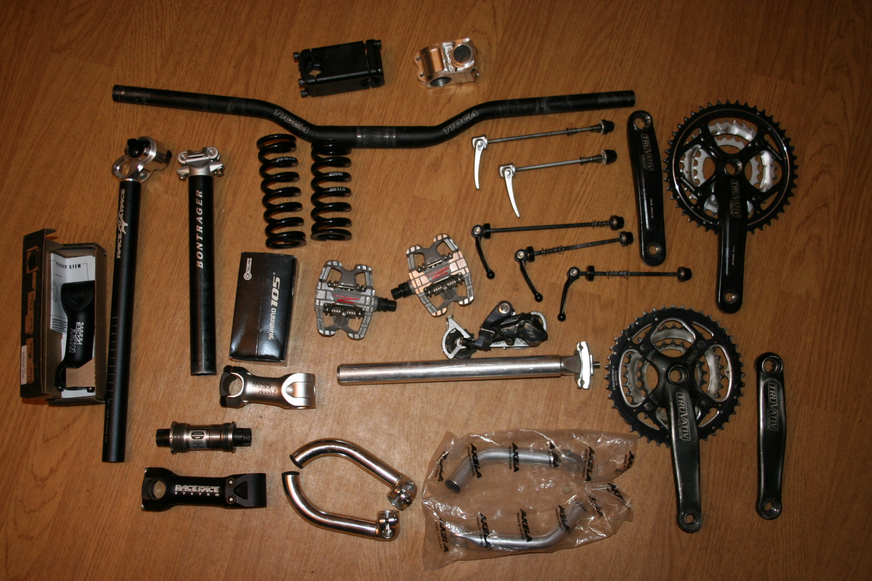 Tioga Cube 75mm stem 150NOK Tioga DH riser 680mm 150NOK Ballistic stem 50mm 150NOK Bontrager setepinne 250mm 31.6mm 50NOK RaceFace Prodigy stem 100mm 100NOK NY XT qr par 200NOK Truvative Blaze ISIS krank 170mm 300NOK som ny Truvative FireX ISIS krank 175mm 250NOK Kalloy setepinne 26.6 280mm 100NOK Hope qr frem 100NOK LX bakgir 50NOK godt brukt RF evolve stem sølv 80mm 150NOK Shimano 105 BB5500 110mm 68 150NOK NY Shimano BB ES70 113mm 68 150NOK Ritchey WCS barends 100NOK no name barends 50NOK RF system stem 120mm svart 100NOK Som sagt diverse skrot, er lei av å ha dette liggende, noen som er klar for alt for en 1000lapp inkludert porto? ellers er alle priser pluss porto