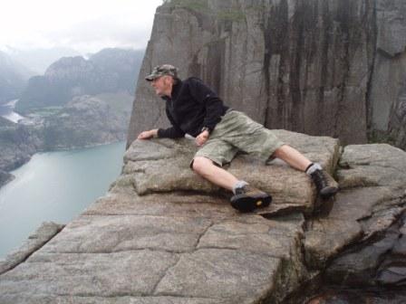 Hoppet med sykkel er utført fra Kjerrag ja, men ikke Prekestolen.