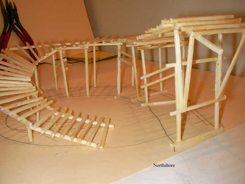 Jeg er med. Angående fyrstikkonstruksjonen høyere opp i posten tror jeg en god ide er å tenke på diagonale stag i og mellom stolper til bakken. Om det skal være et snev av realisme da :-)