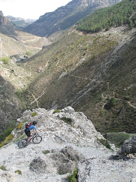 I løpet av de tre dagene vi var der, fikk vi prøvd oss i mye forskjellig terreng. Første dag ble vi kjørt opp til ca 2300 moh, og ettersom Monachil ligger på ca 800 moh sier det seg selv at det ble mye nedkjøringer denne dagen (oh joy!). Høyden gjorde sitt til at en slapp vinterkropp ble godt kjørt selv om det gikk mest nedover, men ikke verre enn at vi gledet oss stort til neste dag. Den skulle inneholde mere klatringer, og terrenget var ikke like åpent som dagen før. Mye furuskog, men også singletracks som tilbød høy fart med en fantastisk utsikt mot snøkledde topper.