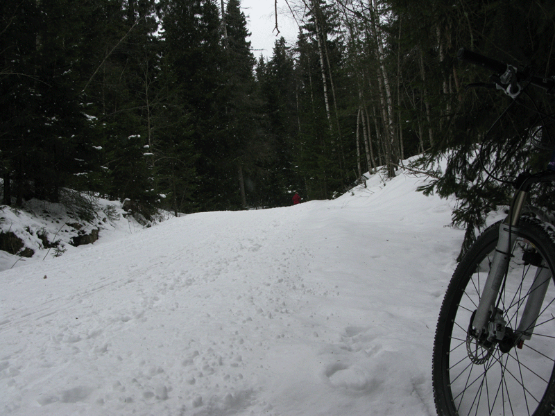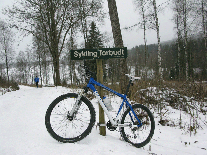 Snø eller ikke, så røsket jeg med meg noen slitte Python-dekk og la ut på en liten luftetur i dag. Turen gikk mot Rikshospitalet og retning Sognsvann, hvor sykkelsporene mine forsvant oppover et stykke mot Ullevålsæter, snudde og fant veien nedover igjen og rundt vannet.
