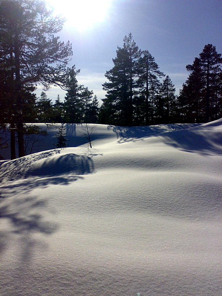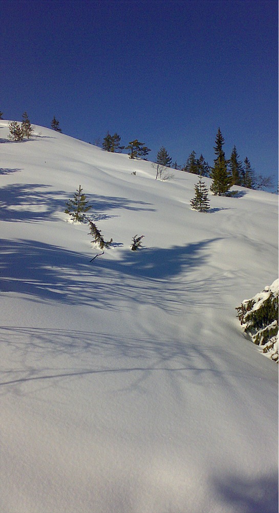 Men det var ganske frustrerende å toge gjennom skogen på trikkeskinnespor og se "oj, der var det en lekker skråning med en halvmeter løssnø og fine former" og "oj, der var det enda en lekker dalside med masse snø" og "næmmenharrusett, enda mere deilig fluff som har dandert seg nedover i terrenget".....