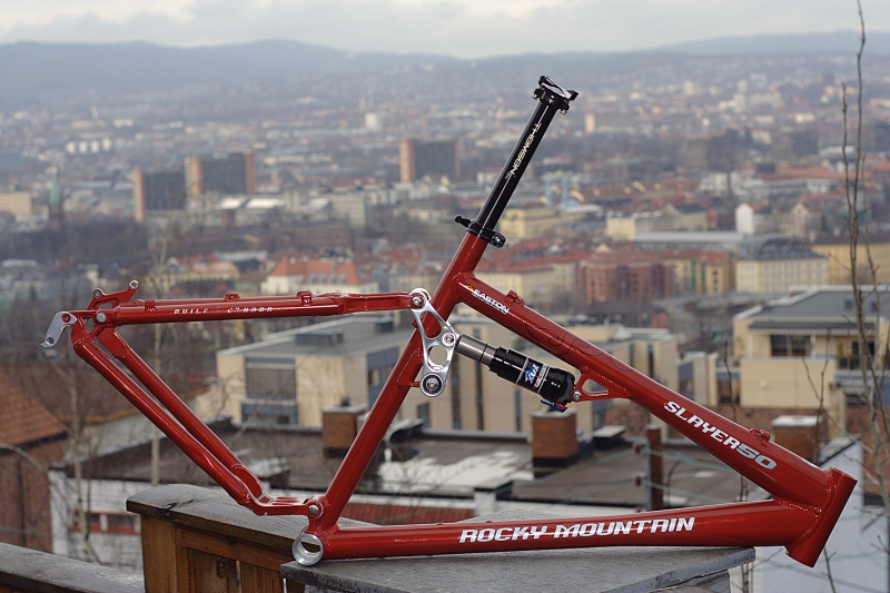 19" Rocky Mountain Slayer ramme. 2004/2005 modell som jeg fikk ny på garanti i 2006 (2006 stickers).