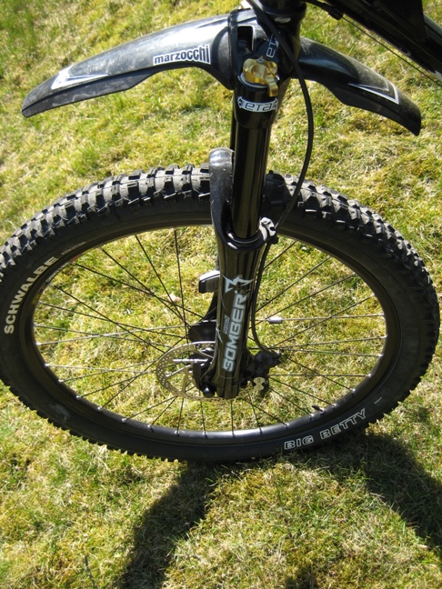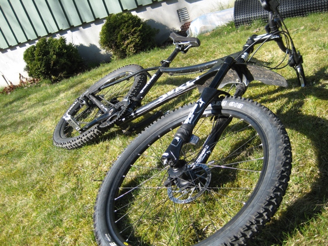 Deore skivebrems bak, xt foran. salsa motoAce styre, Schwalbe BigBetty 2.4" dekk. svæære! mavic 121 sup disc felger 36h.