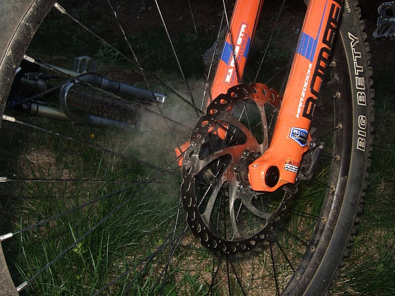 Er det vanlig at det kan komme røyk fra klossene på hydrauliske skivebremser? Jeg kjørte ned en lang bratt bakke og stoppet i bunn da jeg så at det kom hvit røyk ut av bremsen bak (Lite sølvhull på juicy bremser) :S