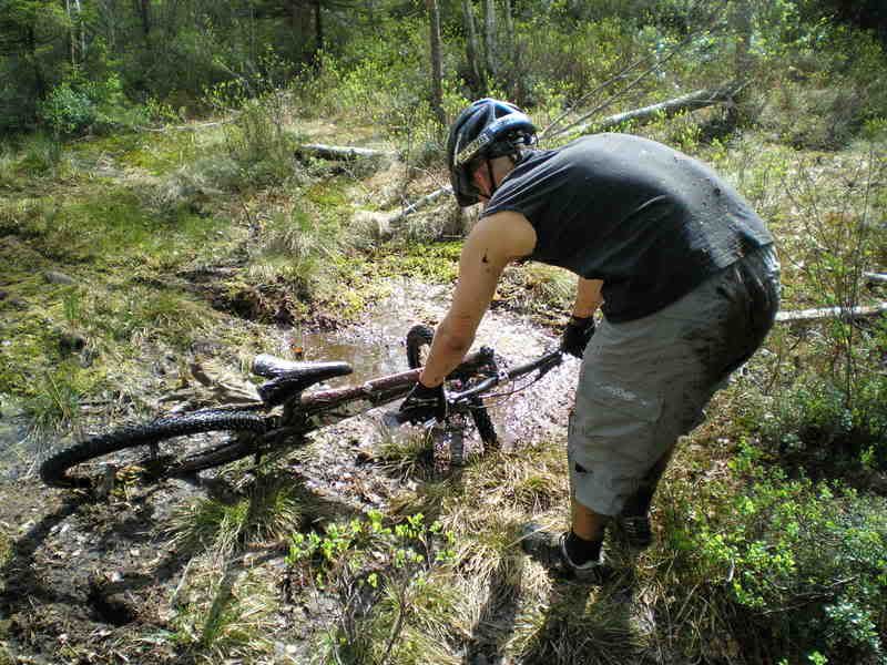 Vi andre syklet i kanten av bløta,men Perh måte selvsagt over på den værst tenkelige plassen.(han kom ikke over)
