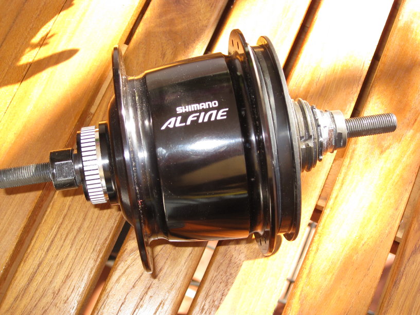 Bike-components.de har en Alfine-pakke som inneholder alt du trenger til 189 Euro. Jeg fikk Oslo Sportslager til å bygge hjulet. Det ble en kostbar fornøyelse, for det var visst vanskelig å finne riktig eikelengde. Nå har de litt erfaring, så det bør gå lettere og billigere for nestemann :-)
