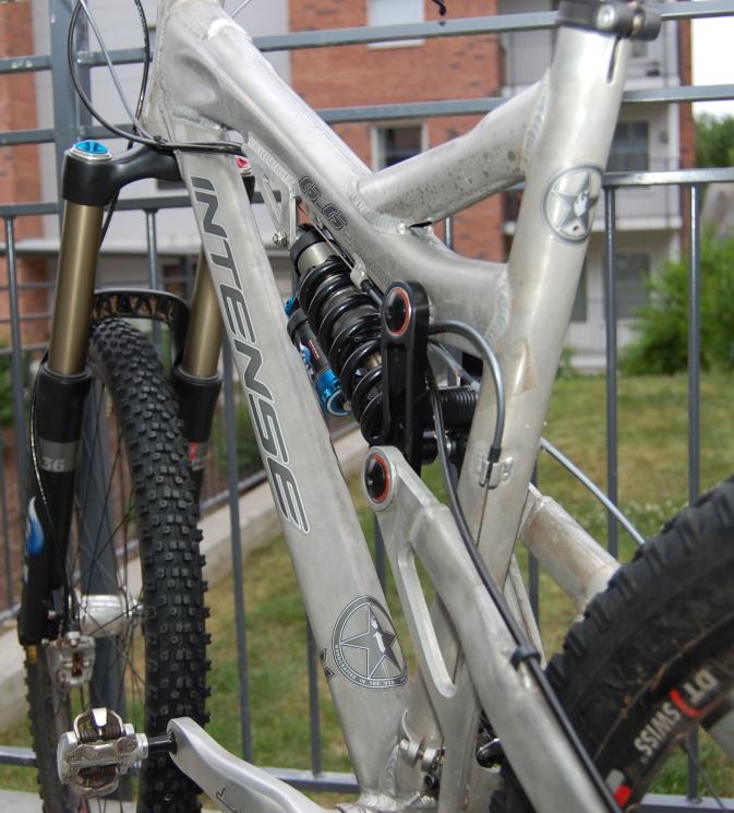 Selger min Intense 6.6 ramme i størrelse Medium. Fargen, eller rettere sagt finish, er Works. Fikk rammen på sensommeren 2007 fra Ole Blokhus/Dogstar. Rammen er brukt til stisykling, og har ingen merker eller bulker etter fall. Alle lager og linker er i prima stand. Jeg selger rammen fordi jeg har pådratt meg en ryggskade som gjør at jeg ikke får syklet på den på lang tid.