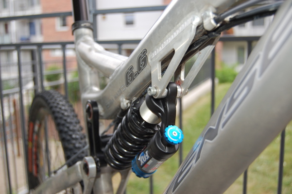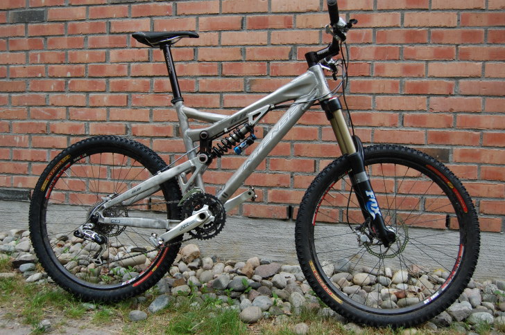 Rammen leveres med Fox DHX 5.0 Coil bakdemper. Denne demperen er opprinnelig en 2006 modell som senere har blitt oppgradert med samme innmat som 2008 modellen. Oppgraderingen ble gjort av Cyklon. Demperen har kun blitt kjørt 2 ganger etter at den ble oppgradert til 2008-innmat og er således å regne som ny. Står på en 600-fjær som passer bra til meg på rundt 73 kilo i nettoen, men tåler nok litt tyngre ryttere ganske greit. Ellers veldig fornøyd med denne ramma til stisykling.