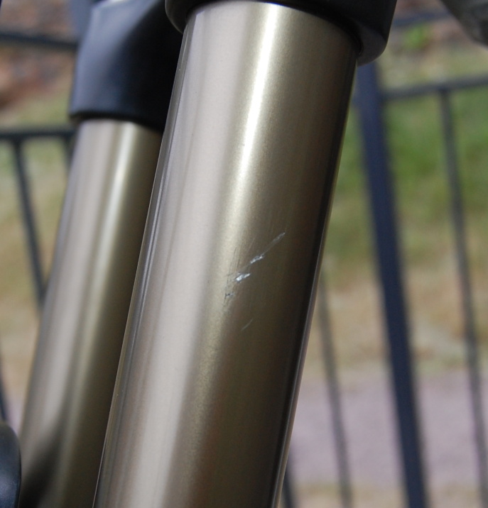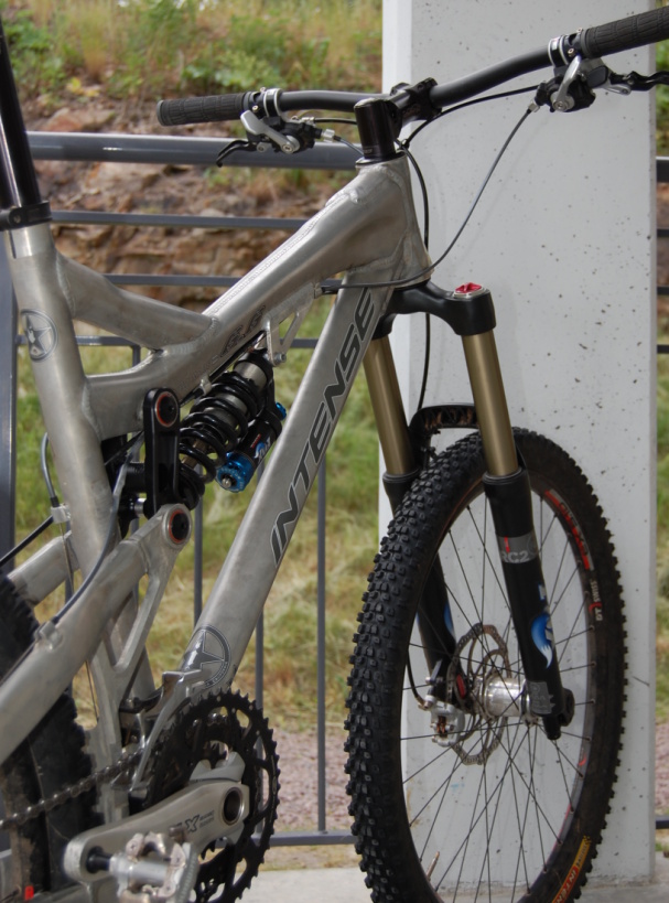 Rammen passer ifølge Intense til dempegafler med 145 til 170mm vandring. Jeg har brukt den med en 36 Van RC2 (2006 modell) som har 160mm vandring. Denne kan, om ønskelig, selges med rammen. Dempegaffelen har kun blitt kjørt 2 ganger etter siste service og er i fin stand. Eneste merknad er en liten ripe øverst på ene innerbenet, men denne ble ikke vurdert som noe problem av Cyklon da gaffelen var på service. Dempegaffelen leveres med 3 fjærer (soft, medium, og firm), som gjør at man enkelt kan tilpasse gaffelen til rytterens vekt.