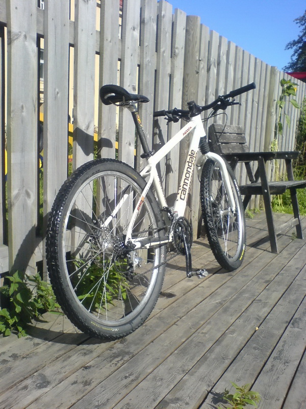 Headshok Fatty Ultra DL CODA Tarantula TX2 29/44 Tiagra SG bakgir, XTR fremgir, Tiagra 12-25 kassett, HG93-kjede, LX/Deore girhendler Avid Juicy 3, 180/160 Easton EC70 setepinne, Coda-stem, Race Face Ride riser styre (alt. BBB flatt carbon-styre), Fizik Gobi sete (alt. Fizik Nisene) Shimano klikk-pedaler (gamle XT?) Shimano XT-nav, DT Comp-eiker, Mavic XM317 felger, Maxxis Crossmax Exception dekk (kan slenge med Stan's No Tubes) Relevante spørsmål kan stilles i tråden. Bud mottas på pm. Prisantydning 7000,-