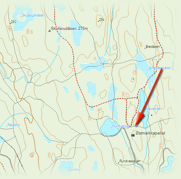 Bakken ligger nordøst for dassen bak Østmarkskapellet, i et stikryss. Den er blåmerket sti videre mot Smalvann.