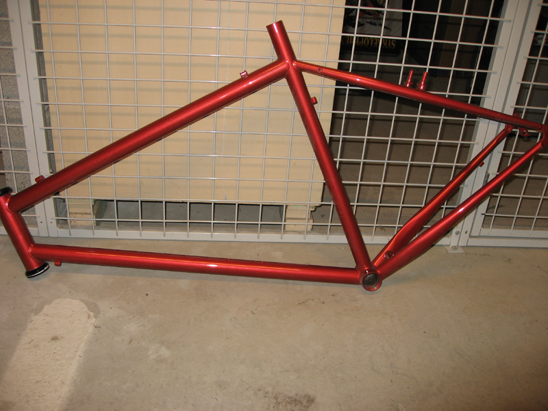 Opprinling blå, men lakker om til rød. Sitter i Ritchey styrelager kopper. Litt avskrapet lakk ved styrelagerkopper.