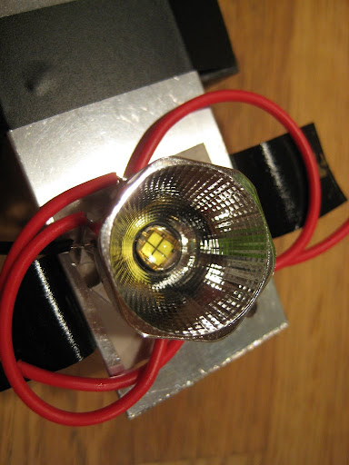 - 1 x Cree MC-E + Ledil Boom reflektor på 10 grader, kjørt på 1A