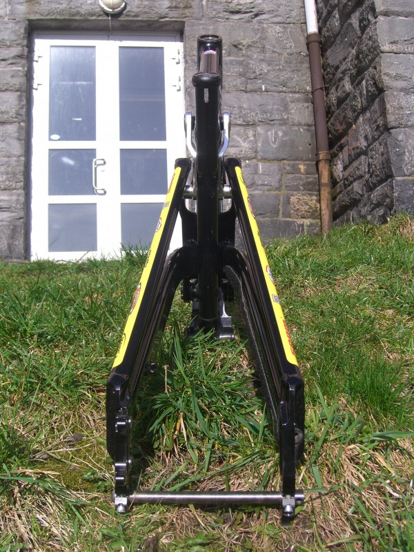 jeg har og en marzocchi 888 vf2, husselfelt krank m/lager, e13 kjedefører/bash og et par 321/champion/lawmill-hjul som passer rett på rammen som kan selges med for tillegg i prisen.