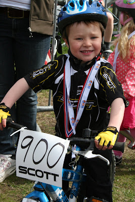 Ole kjører knallsterkt, og det er fett å se han sykle! Rå kjørestil. Håkon tuktet han forrige helg, morsomt med bytte nå. For min egen del er det morsomt å være med igjen med mange gamle og gode fjes. Hadde håpet å slippe unna med 5-6 runder igår, men den gang ei. Konnerud ble også debuten for mini-Hole. 300 meter sprint og 3 premier til alle sammen. Han smilte som en sol hele dagen, og bærer medaljen med stolthet. Håper flere arrangører lager en 3-5 år klasse fremover....