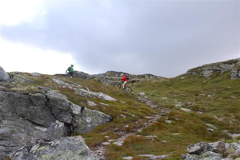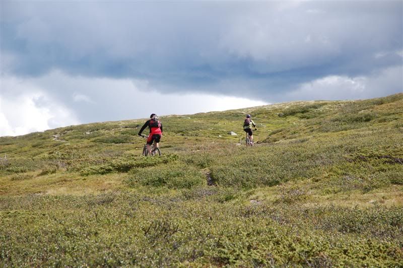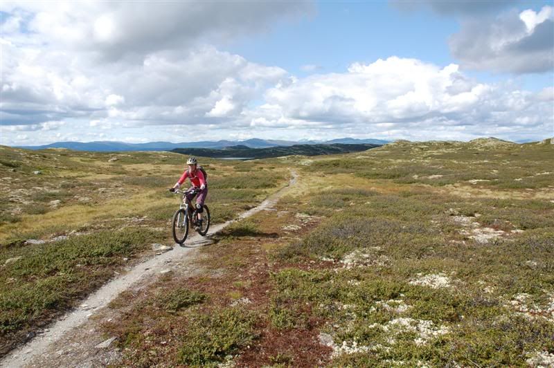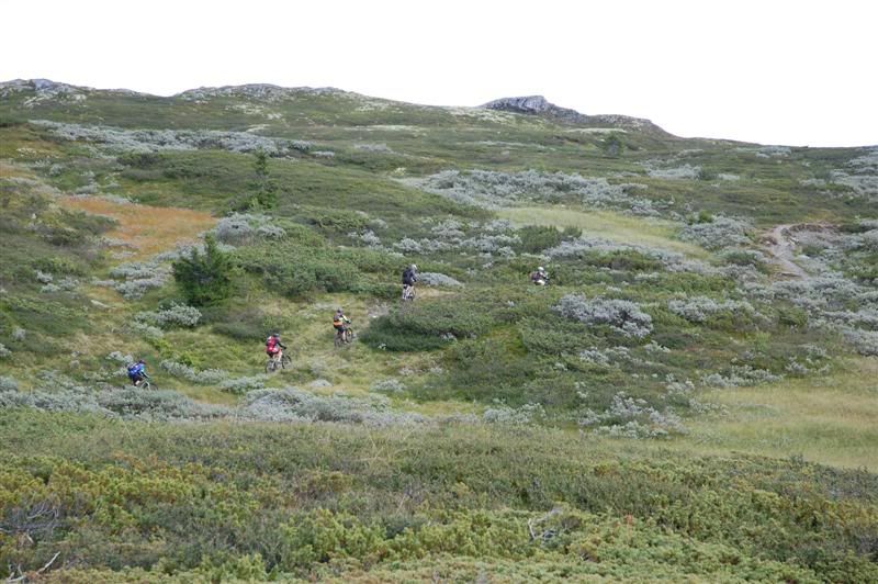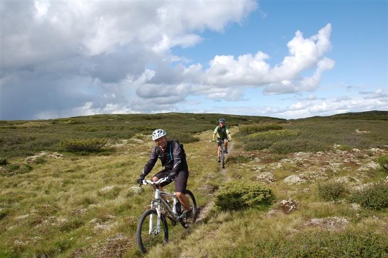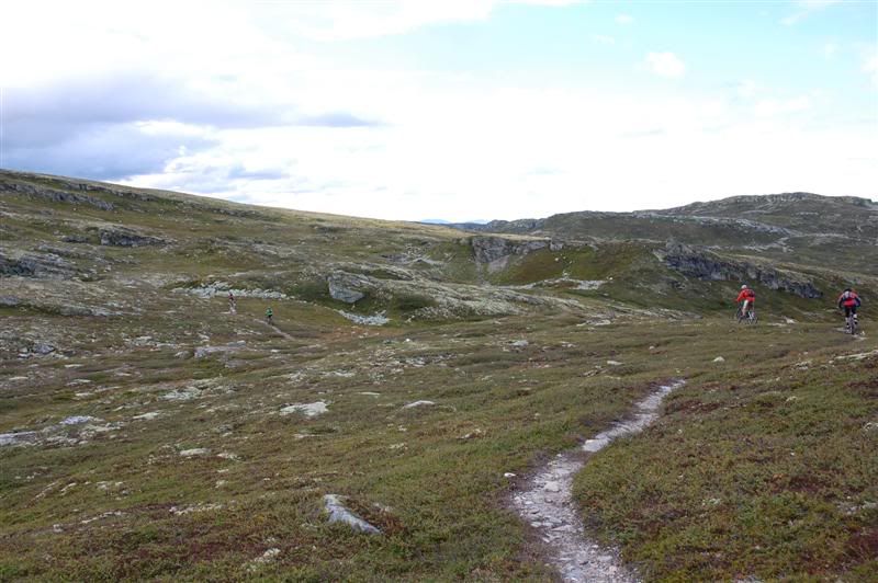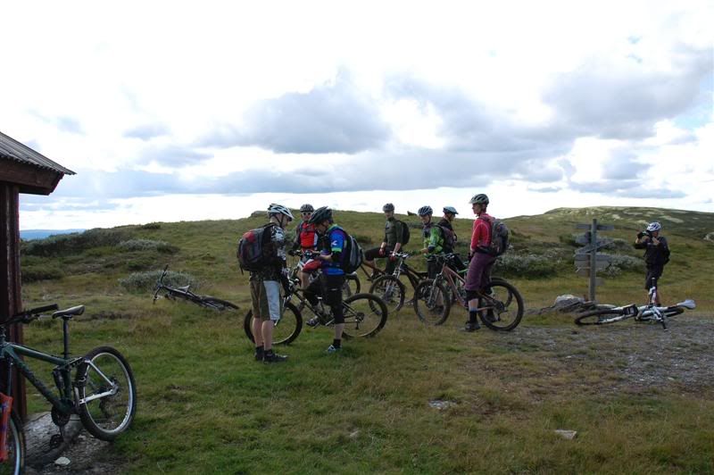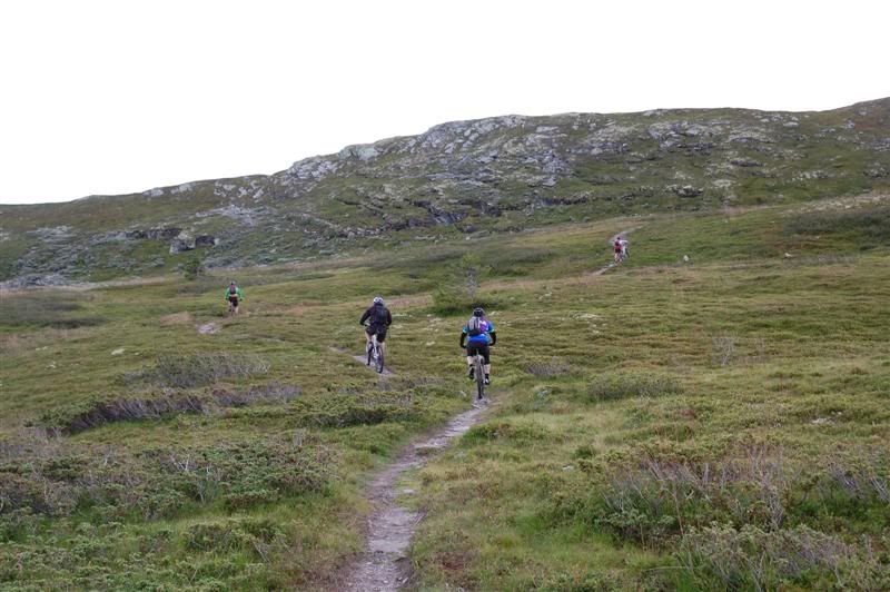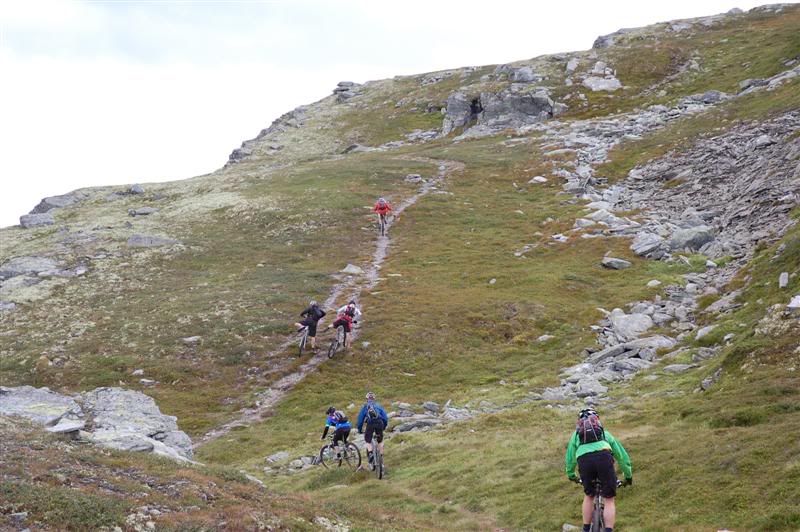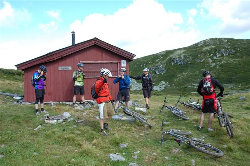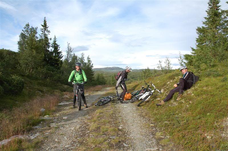 Flere bilder fra fredagsturen: Guttene holder god fart opp bakkene tmork kommer trillende mens jeg venter på turfølget mitt Jeg glemte å spørre hva denne spreke damen heter Svein går helt bananas Erik koser seg på fine stier Christian,Gjermund og Harald kommer trillende Ved Skardbua møtte vi ingeplinge,han slo følge med oss resten av turen Svein på vei opp fra Skardbua Harald og Svein på vei mot Svartvatnet Gjermund og Christian på vei opp fra Skardbua