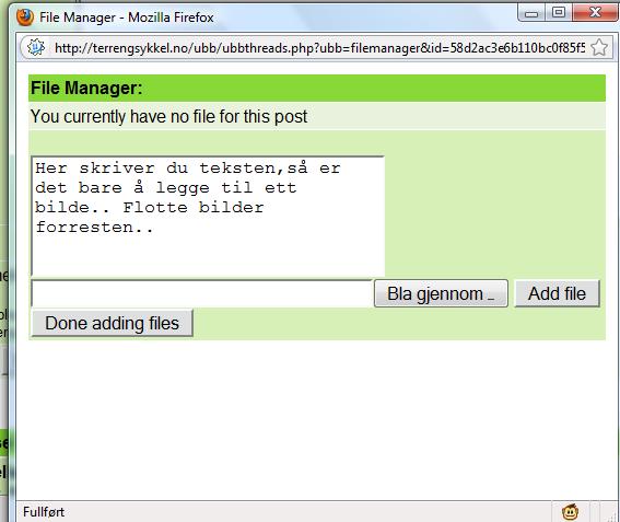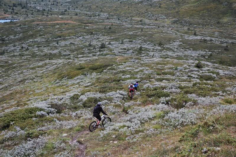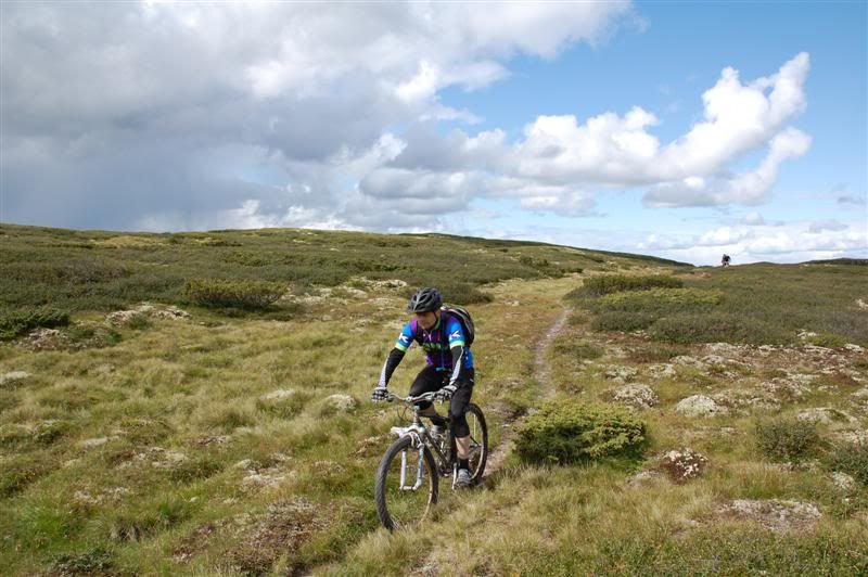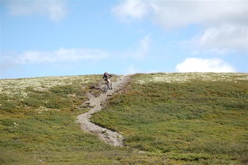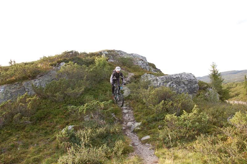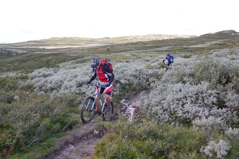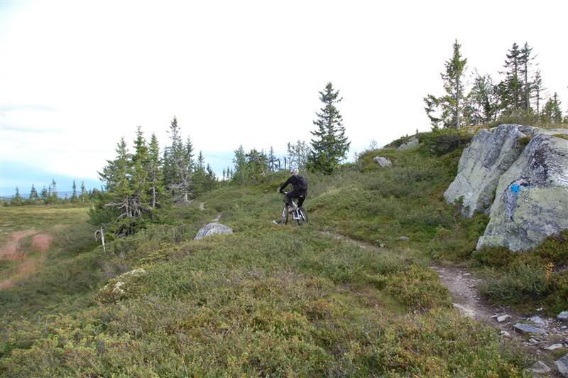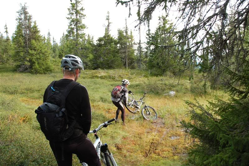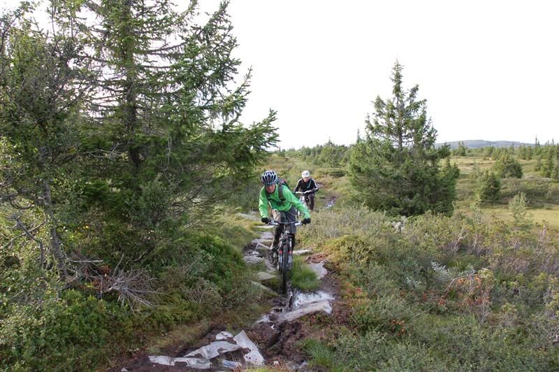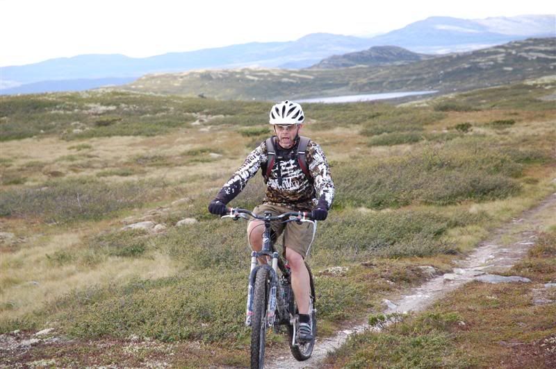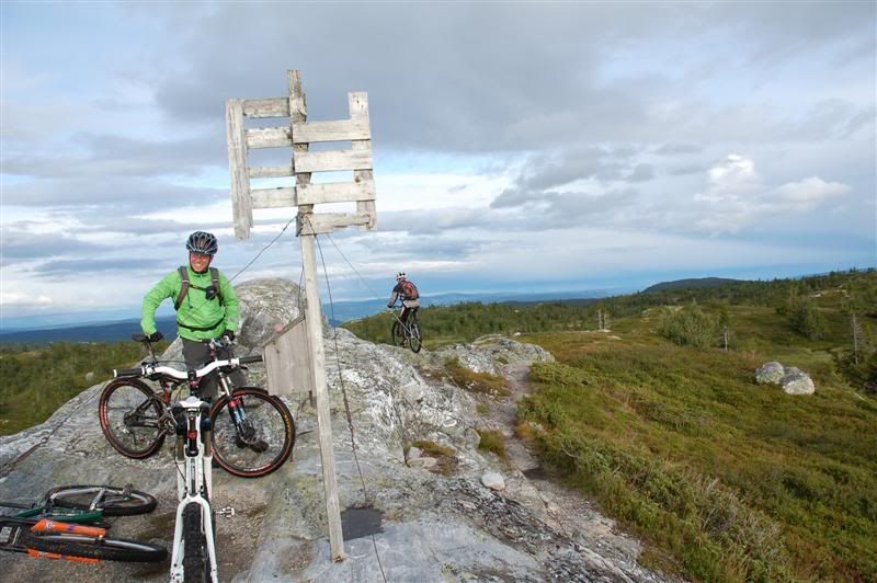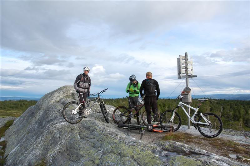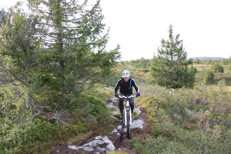Her er noen bilder jeg tok på Skeitreff'09 Vi ankom Skei litt tidligere på torsdagen enn vi hadde håpet på,så det ble tid til en tur opp til Kyrakampen før det ble mørkt Det ble litt myrbushing siden ingen av oss hadde vært der oppe før Nedkjøringen var verdt turen En liten pause på høyeste punkt på veien før vi skulle inn på det vi trodde var rett sti... Erik tester om Spot'en flyter Vi fant frem til Kyrakampen Erik er ivrig etter å prøve stien nedover i retning Veslesætra Christian på vei nedover Og her kommer Erik Erik,Harald og Christian i fint driv Harald prøver å unngå å kjøre seg fast i gjørma Christian følger på Christian på vei bortover et pent parti av stien