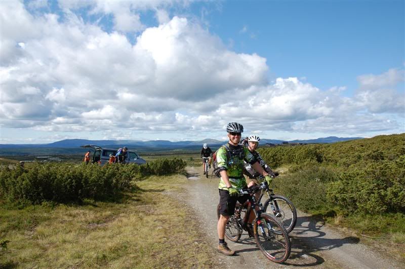 På fredagen ankom Gjermund,så da var vi fem trøndere som ville sykle på de fine stiene i Skeikampen området Vi planla å shuttle opp til Fagerhøy og sykle inn til Skardbua En liten stund før avgang Fagerhøy lurte Svein "Bananas" på om han kunne bli med,noe han selvsagt fikk Ved Skardbua traff vi på ingeplinge,så da var vi syv stykker som la i vei mot Bånnseterkampene Fra Bånnseterkampen tok vi turen opp på Prestkampen og fortsatte derifra mot Avlundskampen og Skeikampen Ned fra Skeikampen ble det slik at vi valgte forskjellige ruter Erik og Harald tok seg like godt et gjørmebad i "åttern" En glad gjeng som vil ut på tur i finværet En liten pust i bakken før vi skal opp den siste kneika til Røgnhøgda Erik prøver å gjenta suksessen fra i fjor,men det går dessverre ikke Svein gjør et hederlig forsøk,men han klarer det ikke han heller Dan sikter seg inn mot kneika Espen triller avgårde på sirkushjul Pause ved hytta som ligger bortafor Storrøgna Svein forserer et gjørmehull på stien mot Skardbua Gjermund kommer like bak på sin fine gamle Kona Guttene drar avgårde mot Skardbua Erik leder an med Christian på hjul,deretter følger Harald,Svein og Gjermund