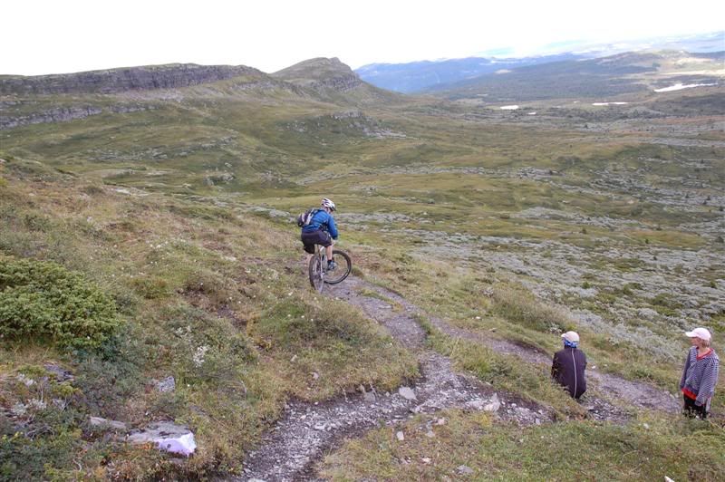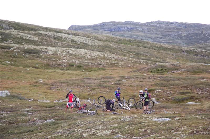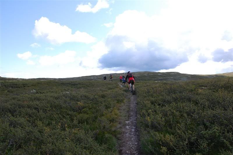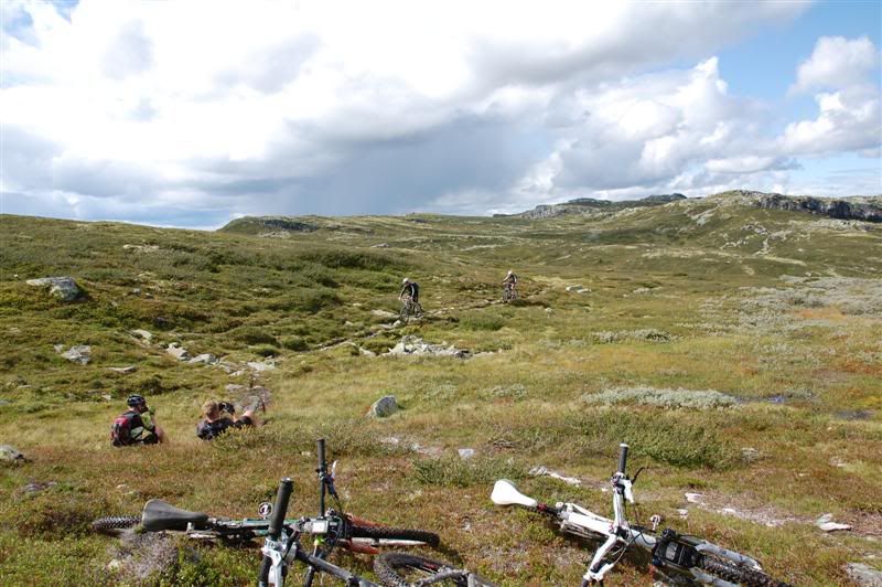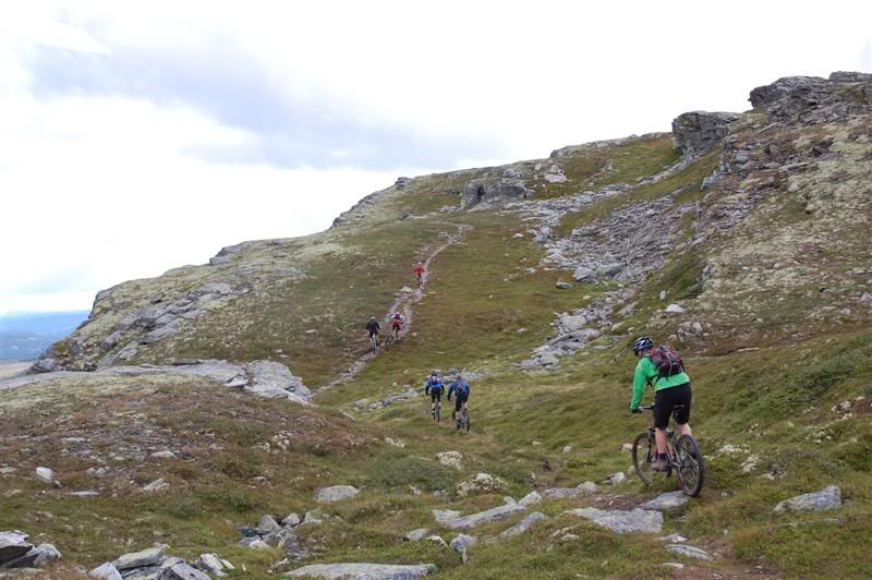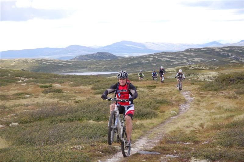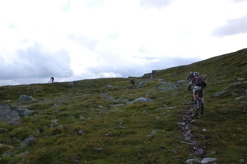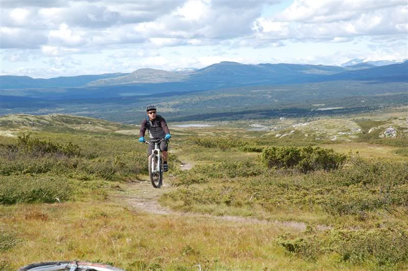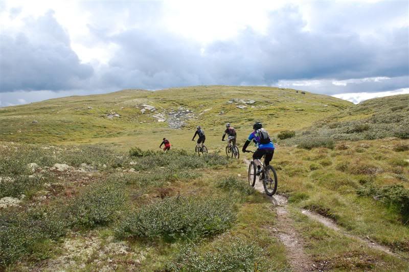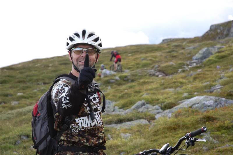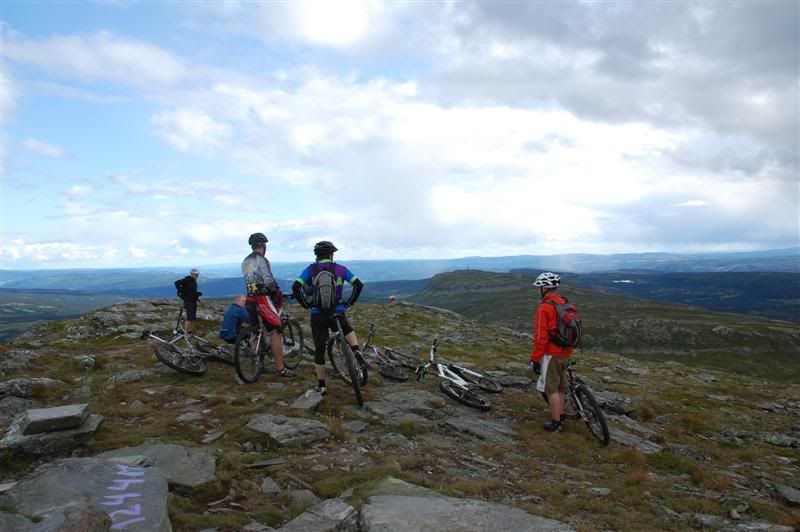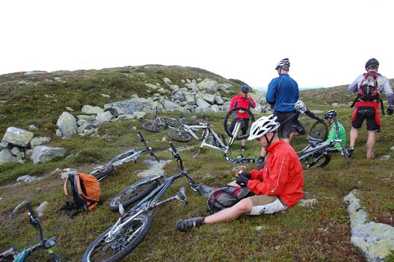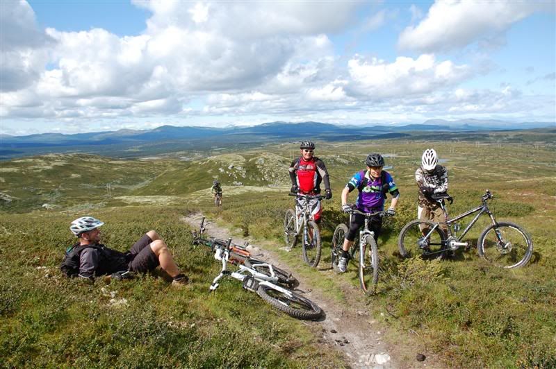 Enda flere bilder fra fredagen: ingeplinge og Erik kommer trillende Gjermund i farta Svein,Inge,Erik og Gjermund på vei mot Svartvatnet Det ser ut som Christian liker seg på de fine stiene oppe fjellet Her kommer mr. Colgate Erik poserer Harald sitter og filmer Svein som klarerer et lite knoteparti Versågod Gjermund,nå er det din tur Svein,Gjermund,Christian,Inge og Erik drar avgårde mot stikrysset ved Prestkampen Harald sitter og filmer Ved stikrysset Prestkampen/Bånnseterkampene/Gamledalen,ble det dobbelpunktering på Christian og Erik Utsikt mot Gamledalen