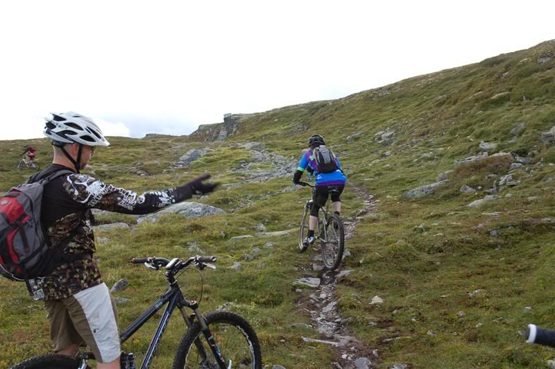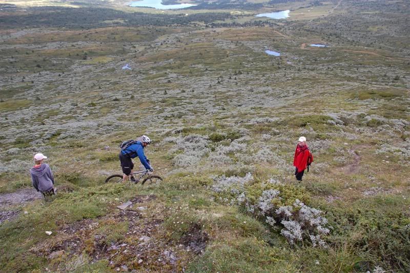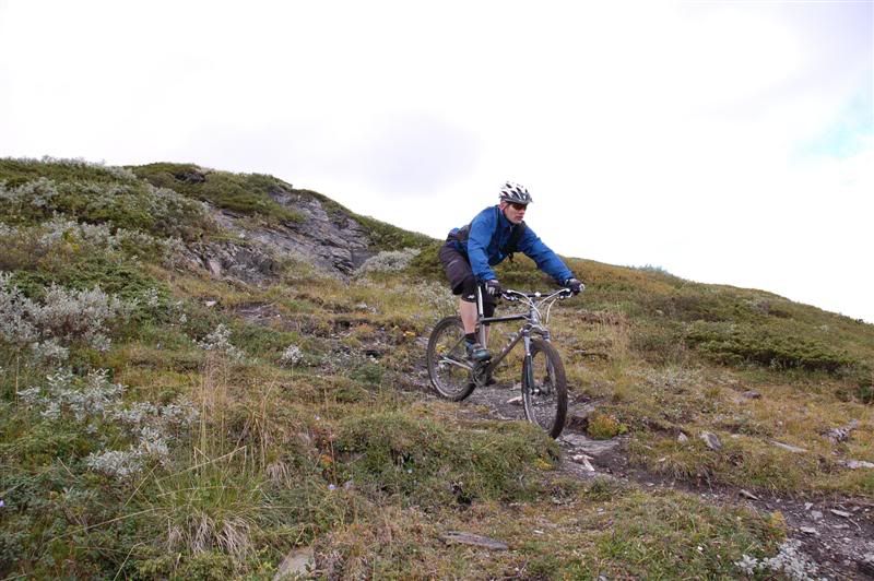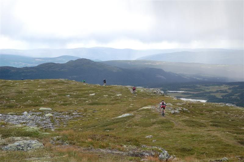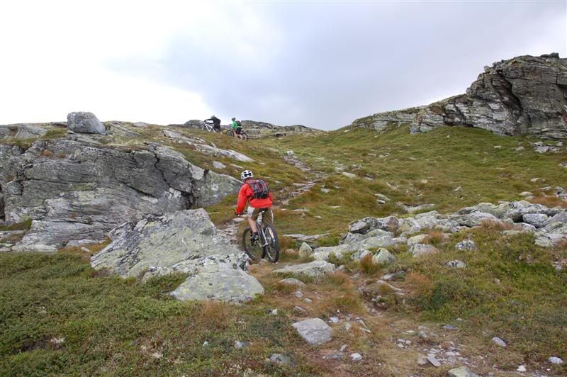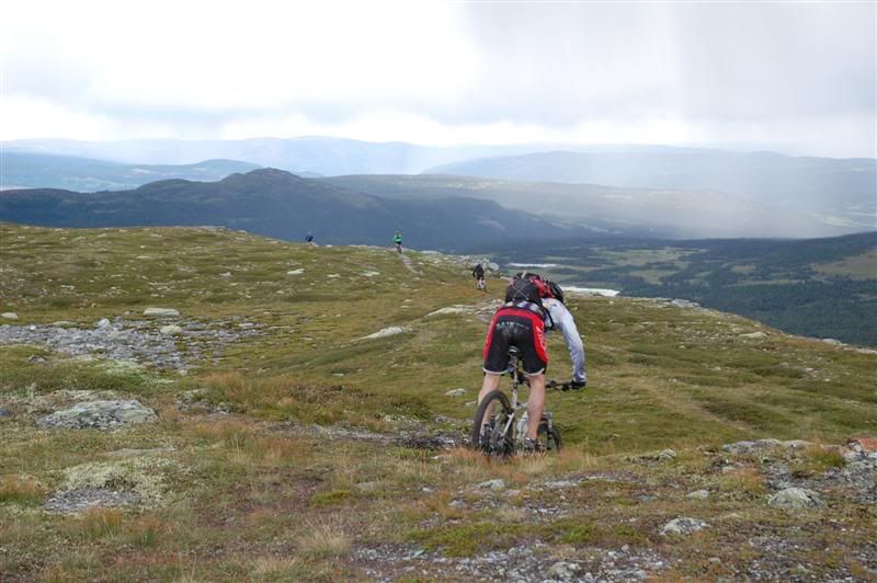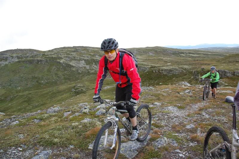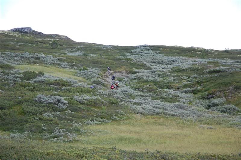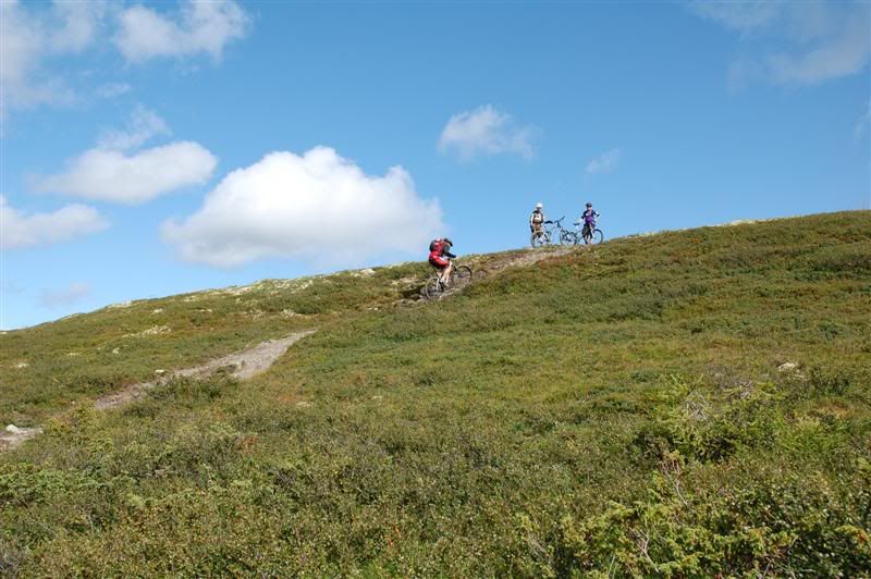 Her er enda noen bilder fra fredagen: Erik fortsetter å sykle oppover lia,mens Christian og Svein bestemmer seg for å gå Erik fortsetter å imponere oppover mot Prestkampen Å kom igjen Erik! Utsikt fra toppen av Prestkampen Gjermund,Svein og Christian på vei ned fra Prestkampen Inge i farta Det er litt bratt Han kom ikke rundt svingen uten fotisett,men det var ikke så mye om å gjøre Inge fortsetter nedover lia,undertegnede gikk ned Godt kjørt Inge