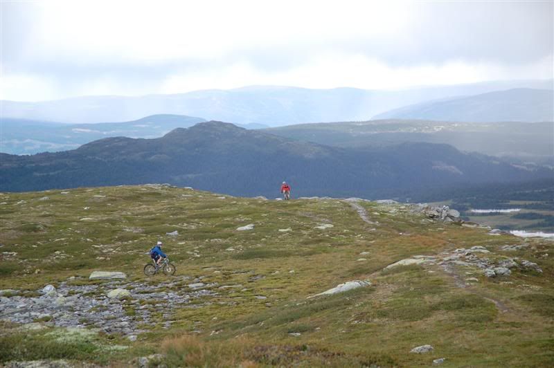 De siste bildene fra fredagen: Svein og Harald på vei opp mot Avlundskampen Christian og Gjermund følger etter Christian har pakket full pedalen med jord Utsikt fra Skeikampen