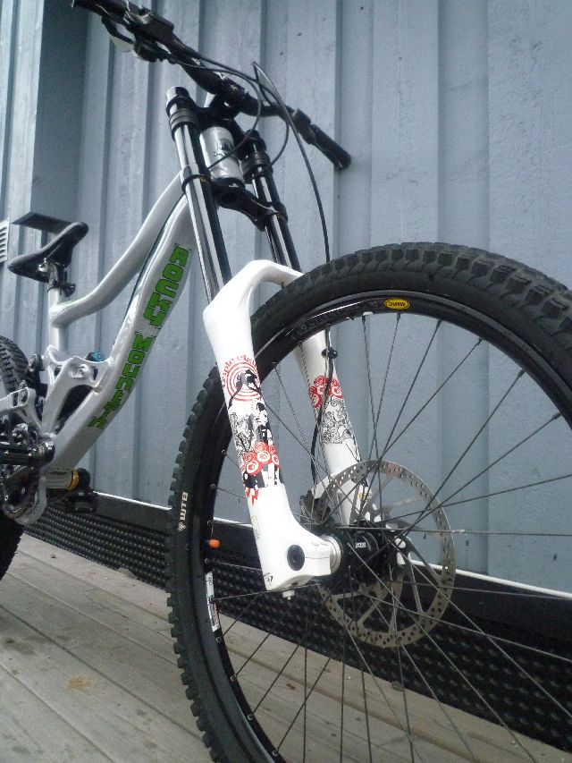 Spec følger: Description: Frame Rocky Mountain FORM™ 7005 aluminum Frame Weight N/A Fork Marzocchi 888RCV Front Travel 203mm Rear Shock FOX DHX 5.0 Rear Travel N/A Head Set FSA Orbit Z 1.5 Stem Included w/ fork Handlebar Race Face Evolve DH Brakes Disc HYD. Shimano Saint Brake Levers Disc HYD. Shimano Saint Shifters Shimano XT Gearing (FR) N/A Gearing (RR) Shimano Deore XT 9spd Cranks & Chainrings Race Face Evolve DH 40T Cranks N/A Chainrings N/A Bottom Bracket Race Face X-TYPE Pedals Wellgo Nice Flats B76 Hubs (FR) RMB Alloy Disc 12mm Axle Hubs (RR) RMB Alloy Disc 20mm Axle Cog-Set Shimano HG-50 11/32 Chain Shimano HG-53 Spokes DT Champion Rims Mavic EX729 Dbl Wall 26 Tires (RR/FR) WTB Dissent 2.5 DNA Seat Post Race Face Evolve DH 30.9mm w/c Saddle WTB Pure V Race Wheel set N/A