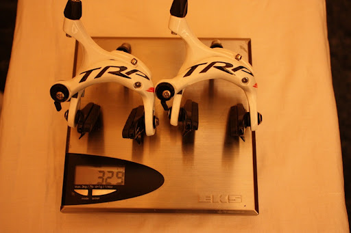 TRP bremser kan absolutt anbefales. Lett vekt og god bremsekraft. Her er en test du kan lese. Både 960, 950 og 920 er å anbefale. Faktisk vekt: