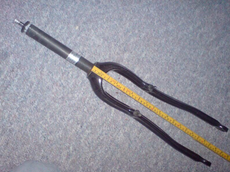 Selger en Trigon gaffel. Både V-brems og skivebrems feste. Vekt: ca. 490 gram. Styrerør: 180mm. Pris: Høyeste bud over 1 500,-