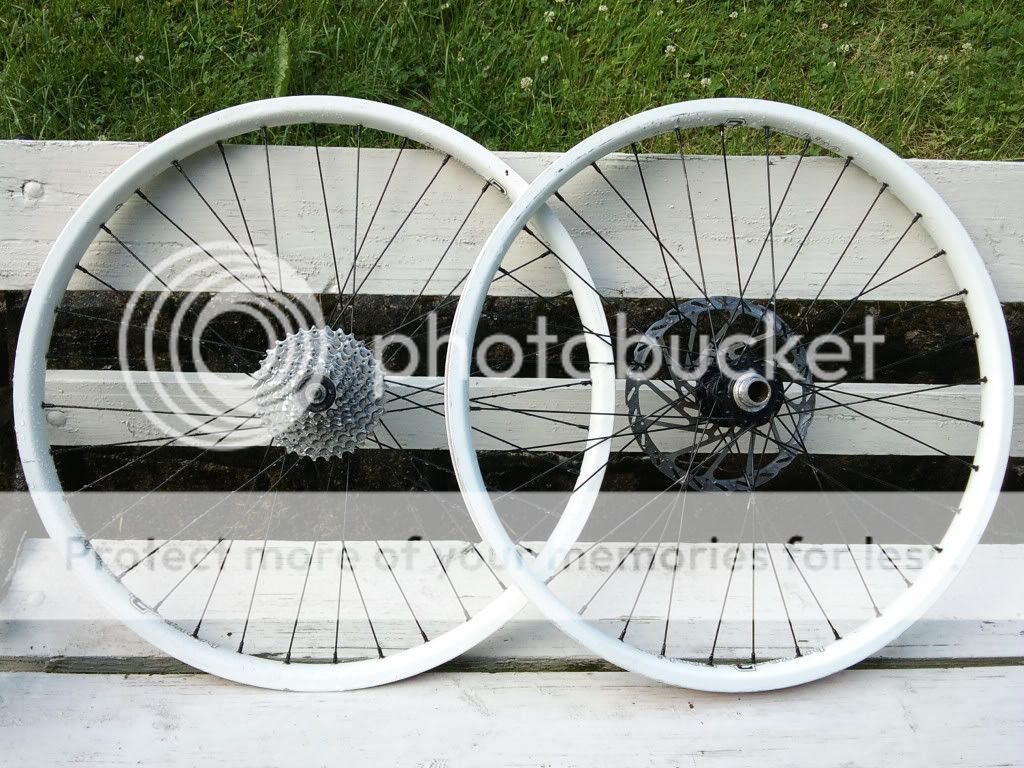 Hjulsettet er 26' ja, men det følger ikke med dekk. Kan brukes med dimensjoner fra ca 2,25 opp til 2,5. Hope QR kan brukes på bakhjulet.