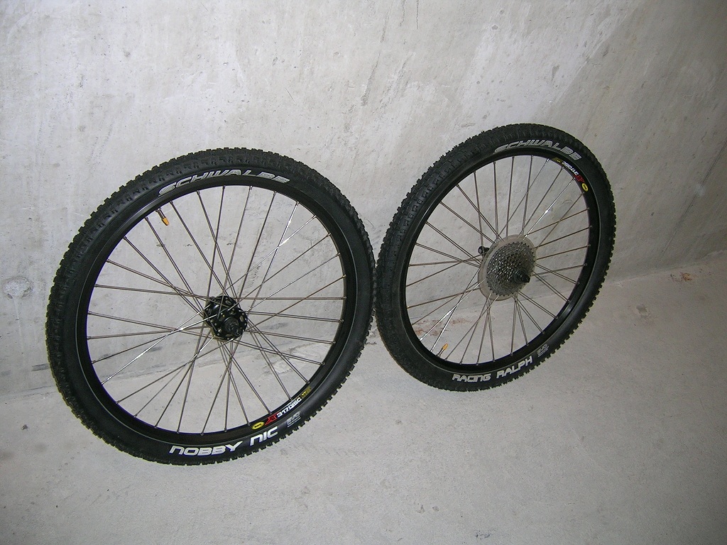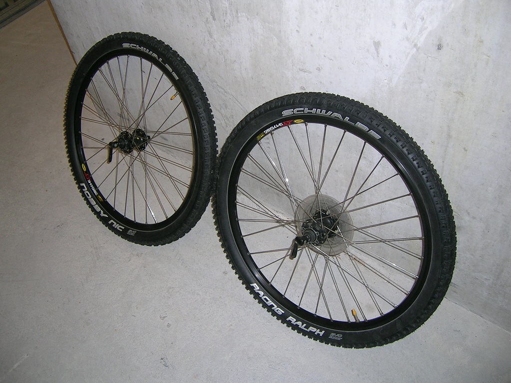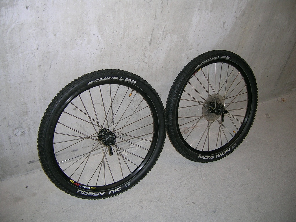 Avid G3 Cleansweep (185/160mm fram/bak) bremseskiver og Schwalbe (Nobby Nic 2.25/Racing Ralph 2.25 fram/bak) dekk kan medfølge mot et rimelig tillegg i prisen.