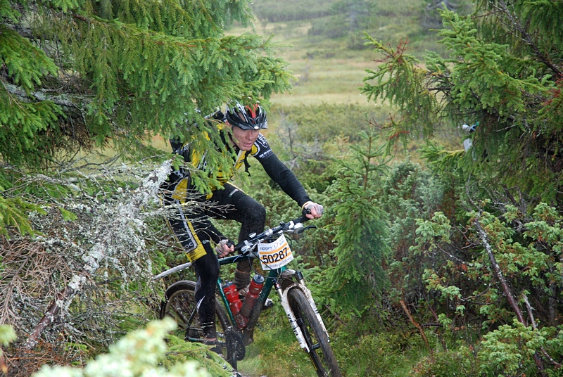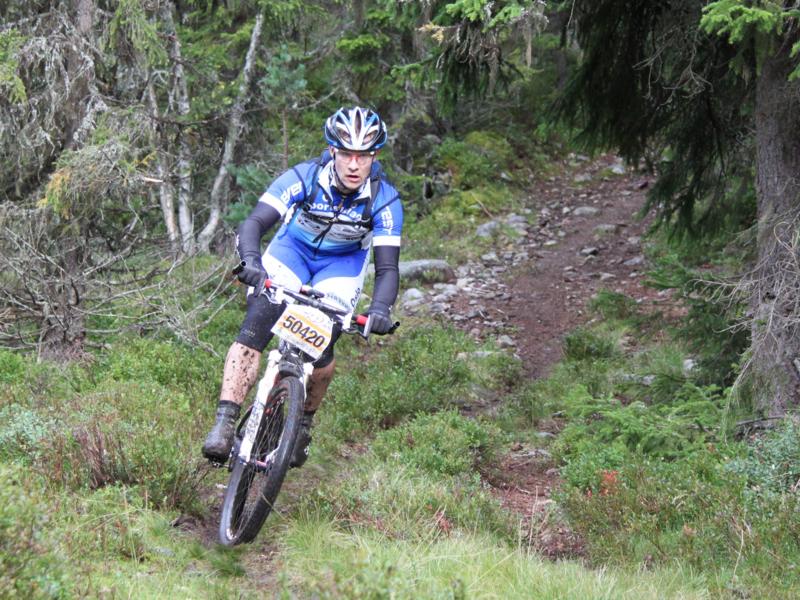 Nedover Hit- og Nevefjellet var definitivt det nærmeste jeg kom flyt (i slow-mo). Se likevel ikke bort fra at nedkjøringen ble påvirket av om man var blant de første 50 eller de siste 50. Det gjaldt for min egen del å holde forhjulet på plass i svinger, siden gjørma prøvde å hindre et godt grep. De siste 15-25 min er asfalt ned til Lillehammer. Hadde vært gøy om disse høydemetrene også hadde vært på sti, men det er visstnok vanskelig å få med grunneierne på. Må asfalt inngå i UB, så synes jeg at den var kanskje best plassert der den kom helt på slutten ... Martin