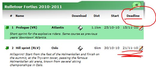Nå har jeg vært på kurs i ukevis og har gått glipp av starten på touren. Jeg kommer hjem igjen 19.11, akkurat tidsnok til å sykle bakketempo. Problemet er bare at jeg har sykla veldig lite de siste ukene, og har til og med hatt luftveisinfeksjon i over tre uker. Dette kan bli interessant. Jeg kommer antageligvis til å presse meg selv halvt i hjel for å komme under fjorårets tid.