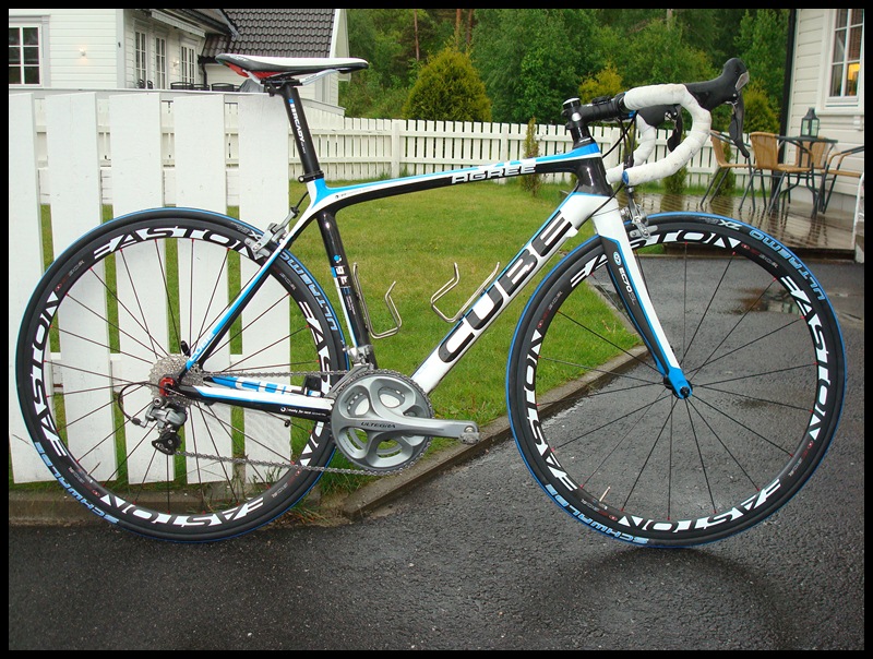 Cervelo S1 Ultegra. Alt er originalt fra da jeg kjøpte den i august, bortsett fra styretapen. Skulle gjerne hatt noen finere flaskeholdere også, kom gjerne med tips. Under vurdering å skifte hjul også, men tror det holder foreløpig for en nybegynner som meg. Har for lite kunnskap foreløpig om hjul og hva jeg burde se etter for å få en merkbar oppgradering.