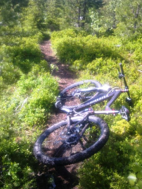 ryddet litt på hogstfeltet med min nye venn; en fiskars manchete. Jeg prøvde en av e sine nyryddete stier, og etter en veldig overraskende OTB fant vi synderen: en spiss og litt vel høy stubbe, skråkuttet med machete. Den hadde vært småskummel å lande på. Så min oppfordring til machetistene er klar: kutt lavt og ikke skrått.