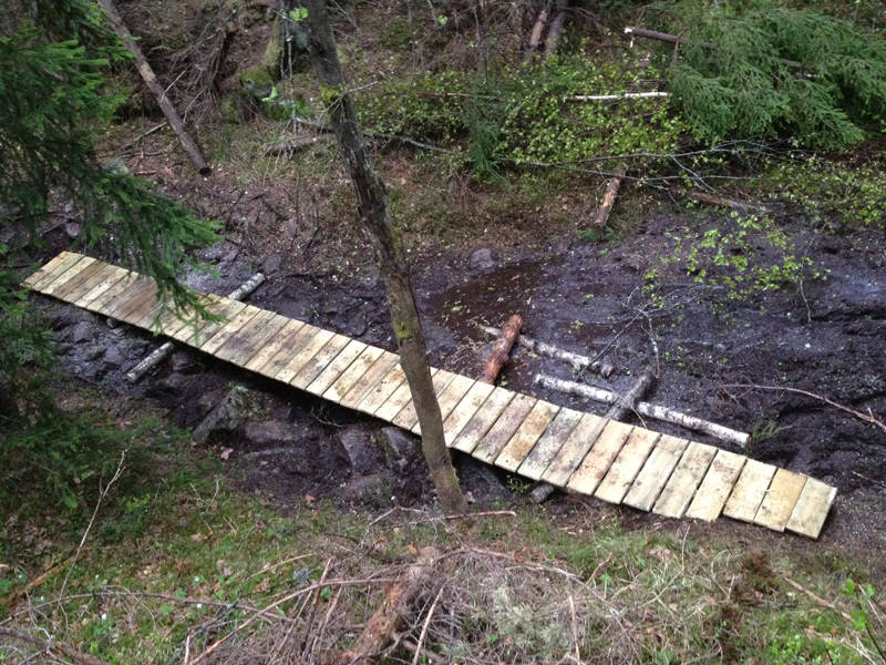 2. Langsgående klopper (altså bord i lengderetningen) vil over tid bli dårlige og ustabile - selv DNT og kommunen har innsett det nå. Dessuten drenerer de for dårlig, og vil fort bli ødelagte.